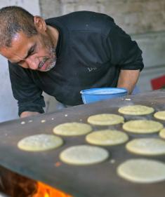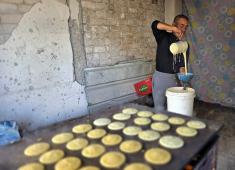 سليم البيوك يُعدّ معجنات القطايف التقليدية في سوق كراج رفح