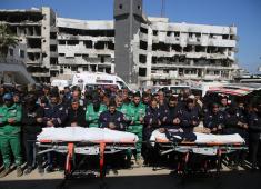 في الثاني من مارس/آذار 2026، نقل مسعفون وسكان محليون جثماني الفلسطينيين محمد وفهيم معمر، بعد استشهادهما على يد مستوطنين إسرائيليين في قرية قريوت، إلى مستشفى الرفيديا بمدينة نابلس في الضفة الغربية (صورة: محمد ناصر)
