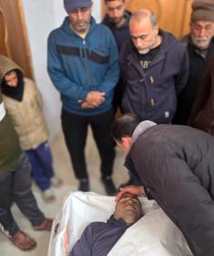 ودّع فلسطينيون جثمان حسن عبد الرحمن اللحام (45 عامًا) في مجمع ناصر الطبي. وقد استشهد بنيران الجيش الإسرائيلي قرب منزله في منطقة قيزان أبو رشوان، جنوب خان يونس، جنوب قطاع غزة، في 26 فبراير/شباط 2026. (صورة: طارق محمد)