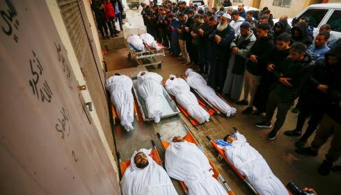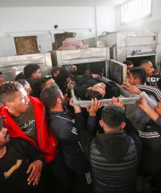 جنازة فلسطينيين قضوا في غارة إسرائيلية استهدفت مدنيين شرق مخيم المغازي