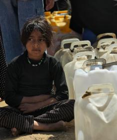 شارك فلسطينيون في اعتصام احتجاجي جنوب خان يونس، داخل مخيمات النزوح، مطالبين بإنهاء أزمة مياه الشرب، 5 أبريل/نيسان 2026. تصوير: طارق محمد (APA Images).