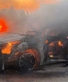 مركبة الزميل الصحفي الشهيد محمد وشاح التي دمرها صاروخ أطلقته طائرة مسيّرة إسرائيلية خلال عملية اغتيال مباشرة غرب مدينة غزة، 8 أبريل/نيسان 2026، (صورة: هادي داود )