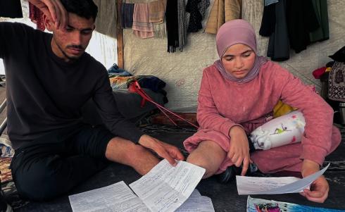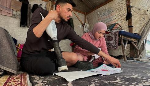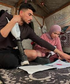 بين الألم والأمل: منة وفايز يرسمان الحياة من داخل خيمة النزوح في غزة بعد أن فقدا أطرافهما بهجوم إسرائيلي