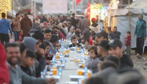 ودّع فلسطينيون جثماني مواطنين اثنين في مستشفى الشفاء بمدينة غزة. استشهد الرجلان في هجوم إسرائيلي استهدف مجموعة من المدنيين قرب حديقة المحطة في شارع يافا، شرق مدينة غزة، في 26 فبراير/شباط 2026. (صورة: عمر أشتوي)