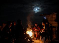 يعيش الفلسطينيون حياتهم اليومية ليلاً في خيام نصبت فوق أنقاض المباني المدمرة في حي الشيخ رضوان
