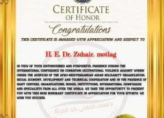 المؤتمر الدولي لمناهضة العنف المهني ضد المرآة يكرم الدكتور زهير مطلق