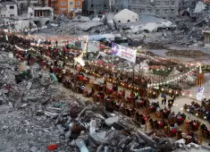رغم الدمار والحرب... فلسطينيون في رفح يحتفلون بأول أيام رمضان بمائدة إفطار جماعية