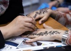 نساء فلسطينيات ينقشن الحنة استعدادا لعيد الفطر في مدينة غزة