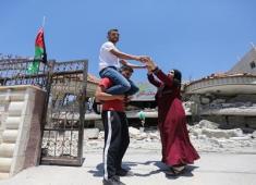 أحمد الشلبي يحتفل بتفوقه في التوجيهي على أنقاض منزله