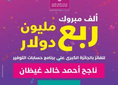 بنك فلسطين يعلن الفائز بالجائزة الكبرى التي تبلغ قيمتها ربع مليون دولار لحسابات التوفير الشهرية