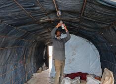 خان يونس: أدوات وأساليب بدائية لتوفير مأوى آمن من برد الشتاء القارس
