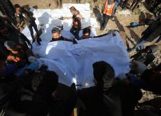 استخراج جثث عشرات الفلسطينيين الذين دُفنوا مؤقتًا في منطقة النفق بمدينة غزة تمهيدًا لنقلها إلى مقابر رسمية