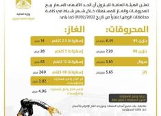 اسعار المحروقات والغاز الرسمية لشهر ٢