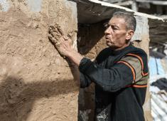 مريض سرطان يبني منزلاً طينياً بيديه في مخيم البريج وسط قطاع غزة