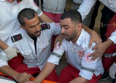 وداع بلا مقدمات.. عندما حمل متطوع الهلال الأحمر الفلسطيني والدته دون أن يعرفها