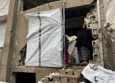خيمة في مبنى غير آمن إنشائياً تأوي زوجين مع أحفادهما العشرة غرب غزة