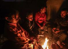 عائلات فلسطينية نازحة تتجمع حول النار للتدفئة في مدينة غزة في ظل الأجواء الباردة