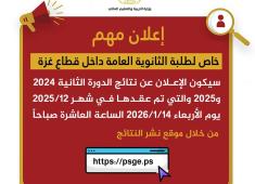 الإعلان عن نتائج الدورة الثانية لطلبة الثانوية العامة داخل قطاع غزة 2024 و2025 الأربعاء المقبل