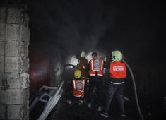 إخماد حريق اندلع في مستودع تابع لمنظمة إغاثة في حي الرمال غرب مدينة غزة