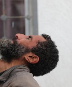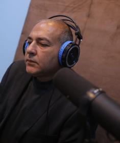 مذيع راديو فلسطيني يبث عبر الإنترنت من استوديوهات إذاعة صوت القدس في غزة، 24 يناير/كانون الثاني 2026. عادت الإذاعة إلى البث بعد توقف دام عامين بسبب الحرب، معتمدةً على معدات بسيطة للتواصل مع الجمهور . صورة: عمر أشتوي