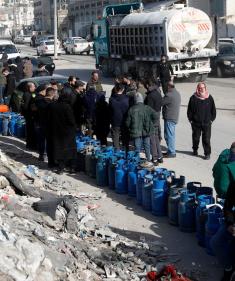 اصطفّ المواطنون الفلسطينيون في طوابير طويلة أمام محطات تعبئة الغاز في الخليل، وسط مخاوف من تفاقم أزمة نقص الغاز في الضفة الغربية، يناير/كانون الثاني 2026. صورة: مأمون وزواز