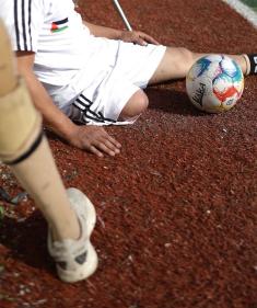 يتدرب فريق "غزة الإرادة" في ملعب ما زال قائماً رغم الأضرار الجسيمة التي لحقت به جراء الهجمات الإسرائيلية على مدينة غزة. يتألف الفريق بالكامل من رياضيين مبتوري الأطراف يستخدمون العكازات، 22 يناير/كانون الثاني 2026.تصوير: عمر نعمان