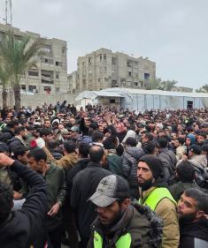 حضر أقارب شاب فلسطيني، قُتل بنيران الجيش الإسرائيلي، مراسم الدفن التي أقيمت في مستشفى الشفاء بمدينة غزة، في 24 يناير/كانون الثاني 2026. (صورة: عمر أشتوي)