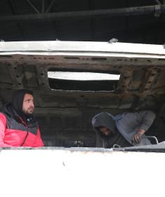 يتفقد الفلسطينيون الأضرار التي لحقت بمركباتهم وشاحناتهم وجرافاتهم بعد أن أضرم مستوطنون إسرائيليون النار فيها خلال هجوم شنوه على قرية عوريف، جنوب نابلس، في الضفة الغربية في 21 يناير/كانون الثاني 2026. صورة: محمد ناصر