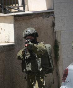 جنود إسرائيليون يقفون في أحد شوارع مدينة نابلس شمال الضفة الغربية، في 23 أبريل/نيسان 2026، خلال غارة للجيش الإسرائيلي. (صورة: محمد ناصر)