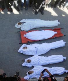 ودّع فلسطينيون جثامين خمسة مواطنين، بينهم ثلاثة أطفال، في مستشفى الشفاء بمدينة غزة. وكانوا قد سقطوا ليلة أمس في غارة جوية إسرائيلية استهدفت تجمعًا للمدنيين في منطقة بيت لاهيا شمال قطاع غزة. 23 أبريل/نيسان 2026. صورة: بلال أسامة