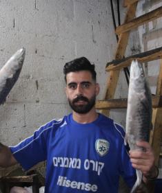الشبان والأطفال يعلمون في تنظيف السمك في سوق مخيم الشاطئ للاجئين الفلسطينيين غرب مدينة غزة