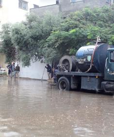 عمال البلدية تقوم بإزالة مياة الأمطار، في مدينة غزة