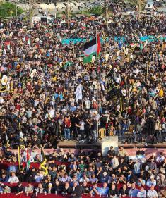 أنصار حركة الجهاد الإسلامي يشاركون في احتفال بمناسبة الذكرى الـ 35 لانطلاق الحركة في مدينة غزة بعنوان :"قتالنا ماض حتى القدس"