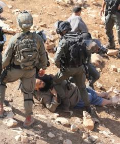 الاحتلال يعتدي على عائلة الحروب ويعتقل عدد منهم بعد طردهم من منزلهم تمهيدا لهدمة في منطقة خلة طه جنوب دورا قرب الخليل .. تصوير - مشهور وحواح