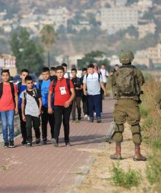 طلاب فلسطينيون يتوجهون الى مدرستهم في قريتي اللبن الشرقية والساوية جنوب نابلس مع بداية العام الدراسي الجديد وسط مضايقات جنود الاحتلال والمستوطنين لهم.