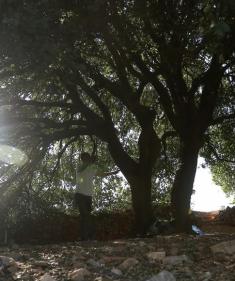 المواطن محمود فرحان يتفقد شجرة البلوط المعمرة في بلدة سنجل قرب رام الله والتي ساهمت في جلب متنزهين من البلدة لزيارة الأراضي المهددة بالاستيطان - تصوير - محمد أبو زيد