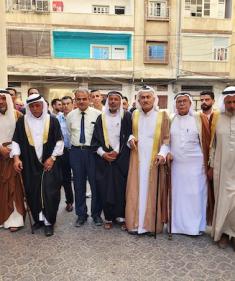 وجهاء فلسطينيون نيابة عن الشاب محمود القاسم وهو لاجيء فلسطيني من لبنان يخطبون فتاة من أهلها في مدينة غزة.