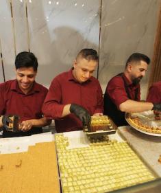 فلسطينيون يشترون الحلويات بعد ظهور نتائج الثانوية العامة في مدينة غزة.
