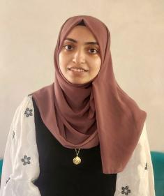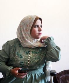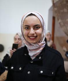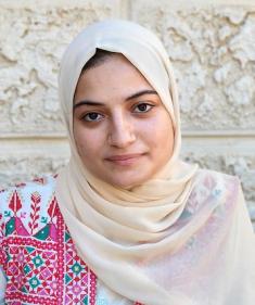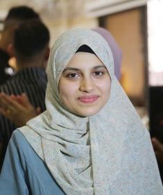 الطالبة سجى عبد العزيز والحاصلة على نسبة 99.4% في غزة