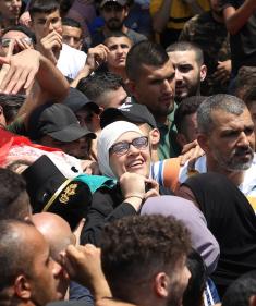 والدة الشهيد إبراهيم النابلسي تشارك في جنازته في مدينة نابلس