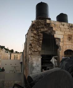 نابلس - مواطنون يتفقدون منزلاً مدمراً في احياء البلدة القديمة جراء العدوان الاسرائيلي فجر اليوم