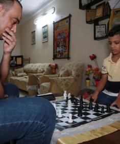 في اليوم العالمي للشطرنج.. الطفل يوسف كنعان من غزة يتألق في مباراة ودية أمام والده