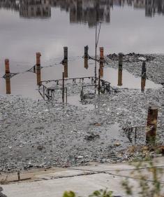 منظر لخيام النازحين في ميناء غزة بعد أن غمرتها مياه الأمطار، مخلفةً بركًا من الماء والطين في أنحاء مدينة غزة، 14 نوفمبر/تشرين الثاني 2025. تصوير: عمر أشتوي