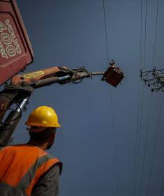 فرق من شركة الكهرباء تبدأ أعمال الصيانة والإصلاح لخطوط الكهرباء المتضررة في دير البلح وسط قطاع غزة، 7 نوفمبر 2025. تصوير: عمر اشتوي