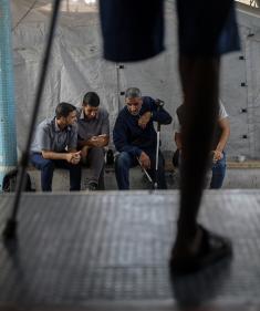 فلسطينيون، بينهم أطفال، يتلقون جلسات تأهيل باستخدام أطراف صناعية في مستشفى حمد للتأهيل بمنطقة الزوايدة وسط قطاع غزة، تصوير: عمر أشتوي