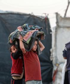 يواجه النازحون الفلسطينيون جراء الهجوم الإسرائيلي المستمر منذ عامين على قطاع غزة ظروفًا إنسانيةً مأساوية