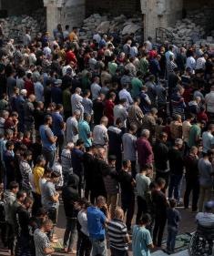 أداء صلاة الجمعة في المسجد العمري الكبير بمدينة غزة.تصوير: عمر أشتوي