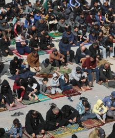 يؤدي الفلسطينيون صلاة الجمعة داخل مدرسة تابعة لوكالة الأونروا، حُوِّلت إلى ملجأ بعد نزوح عائلات منها جراء الهجمات الإسرائيلية منذ 7 أكتوبر/تشرين الأول 2023، في مدينة غزة. 30 يناير/كانون الثاني 2026. صورة: عمر أشتوي