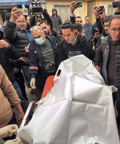 وصلت جثتا صحفيين اثنين تابعين للجنة المصرية إلى مستشفى الشفاء في غزة، بعد هجوم إسرائيلي استهدف سيارة تابعة للجنة في منطقة نتساريم وسط قطاع غزة. 21 يناير/كانون الثاني 2026. صورة: عمر أشتوي