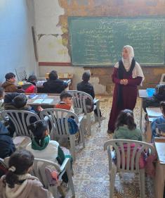 يتلقى الأطفال تعليمهم في أحد المراكز التعليمية بمدينة خان يونس جنوب قطاع غزة وسط مخاوف مستمرة من الغارات الإسرائيلية، نظرًا لموقعها القريب من "الخط الأصفر"، 17 يناير/كانون الثاني 2026.صورة: طارق محمد